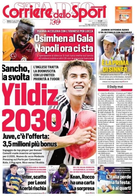 7月12日讯 据西媒《世界体育报》援引《罗马体育报》报道,巴萨和拜仁关注伊尔迪兹,尤文准备最高400万欧年薪续约合同。